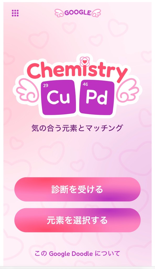 そうです、Googleがバレンタインデーの日に元素×マッチングアプリをテーマにゲームを公開したのです!